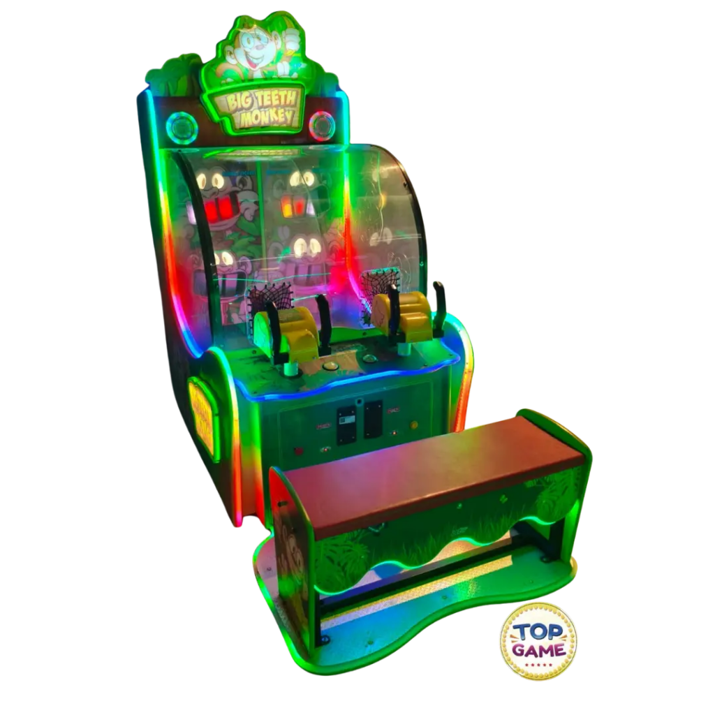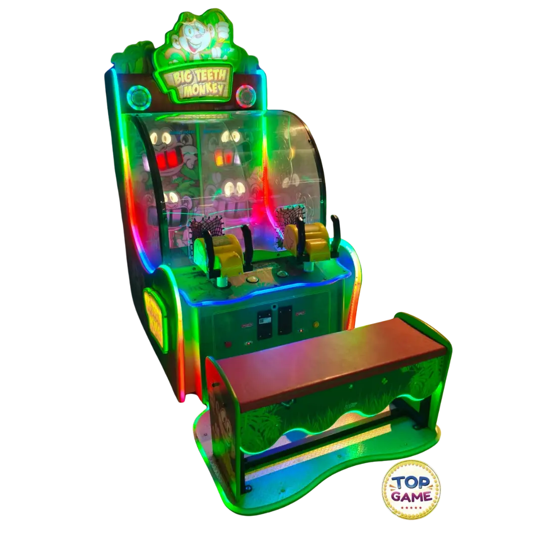 O Big Teeth Monkey é um redemption game interativo que chama atenção de longe e segura o jogador na máquina. Com um canhão frontal intuitivo, o objetivo é simples: acertar os dentes iluminados do macaco no momento certo e pontuar.