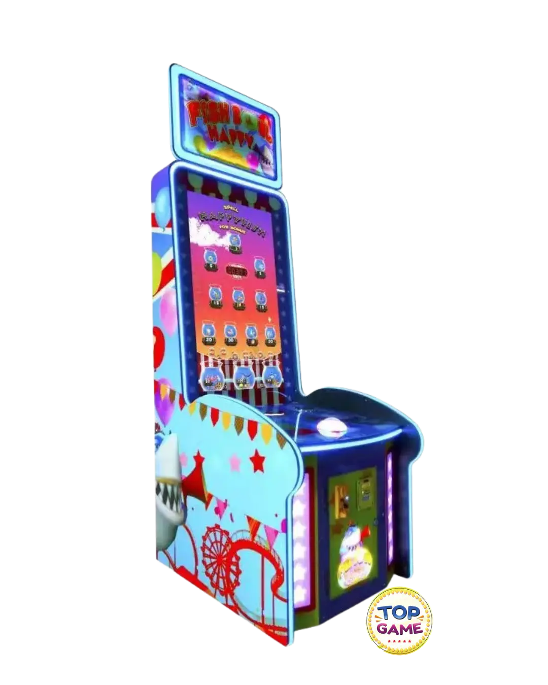 A Fish Bowl é uma máquina de arcade divertida e interativa que transporta os jogadores para um mundo aquático cheio de desafios! Com um design colorido e uma mecânica envolvente, essa arcade é perfeita para shoppings, buffets, parques indoor e fliperamas, garantindo diversão para todas as idades.