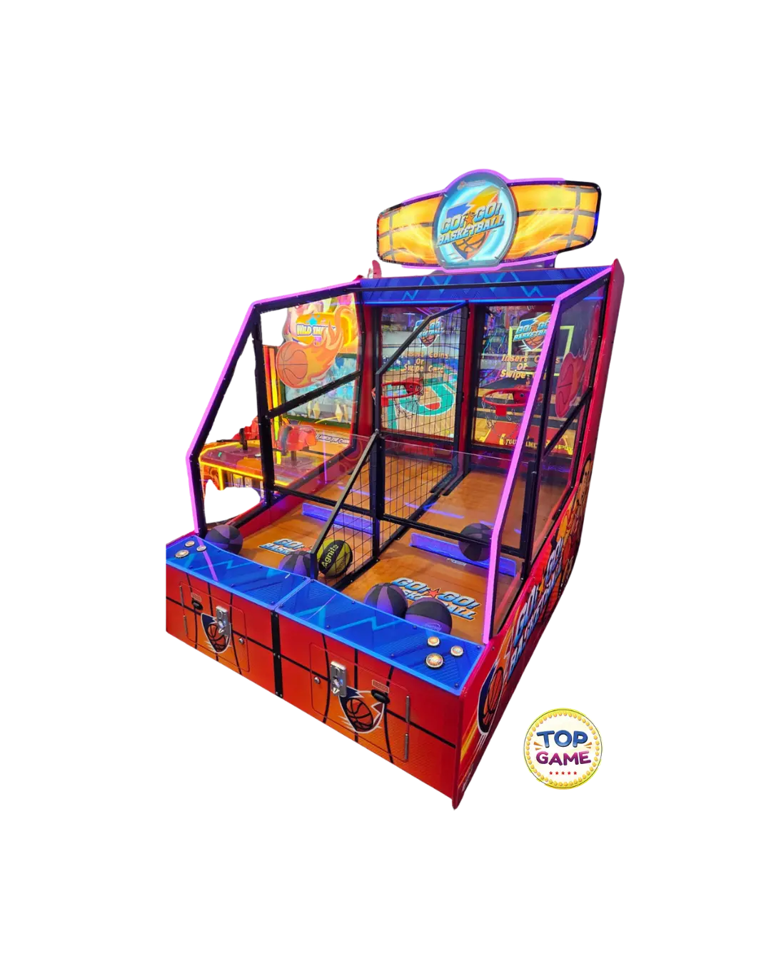 A Go Go Basketball é uma máquina de arcade emocionante que desafia os jogadores a testarem sua mira e agilidade em um jogo de basquete super dinâmico! Com um design moderno, iluminação LED vibrante e mecânica envolvente, essa arcade é ideal para shoppings, buffets, parques indoor e fliperamas, garantindo diversão para todas as idades.