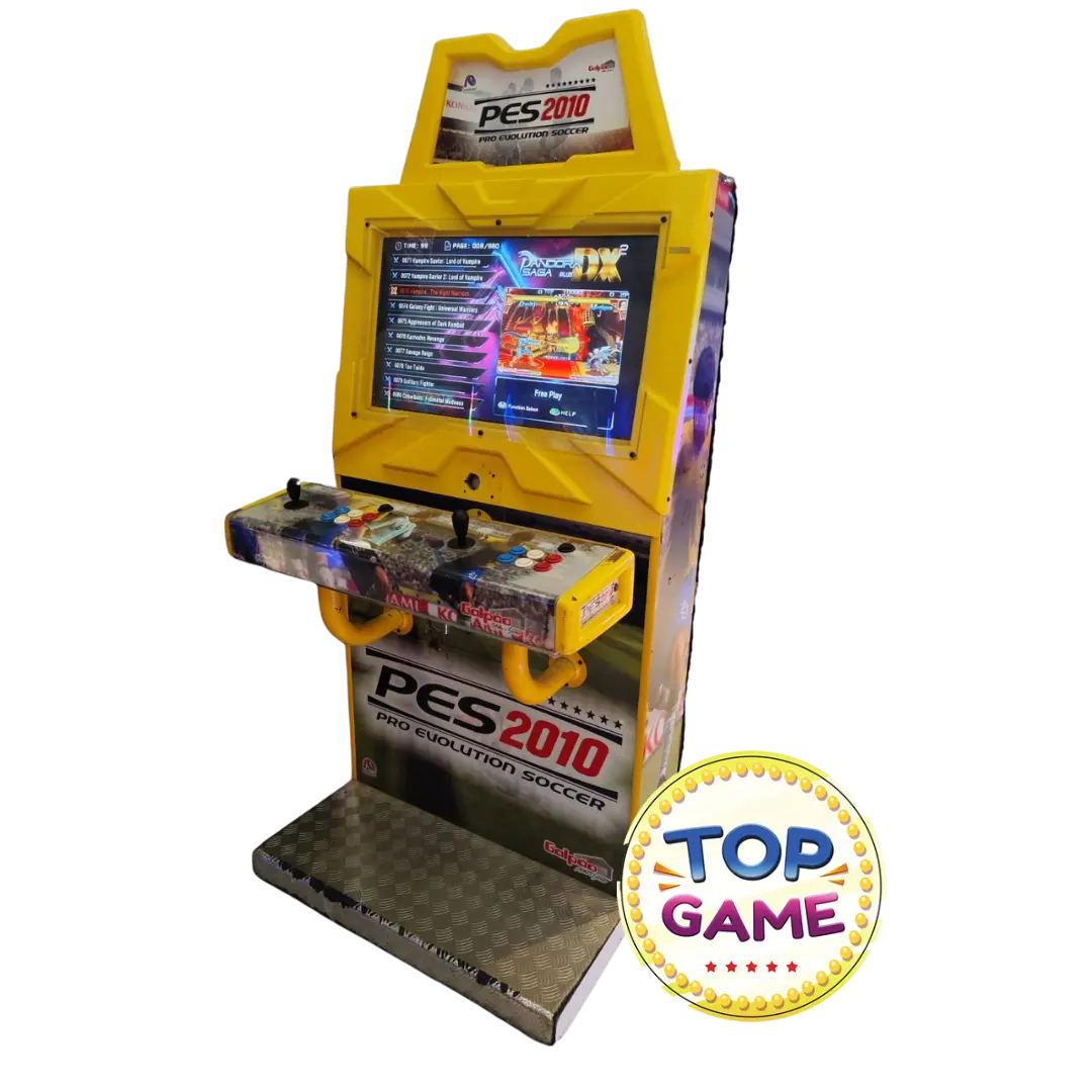 Com design vibrante na cor amarela e painel decorado com artes do PES 2010, ela combina o charme retrô com o melhor da tecnologia moderna, oferecendo centenas de jogos clássicos em uma só máquina, entre eles: