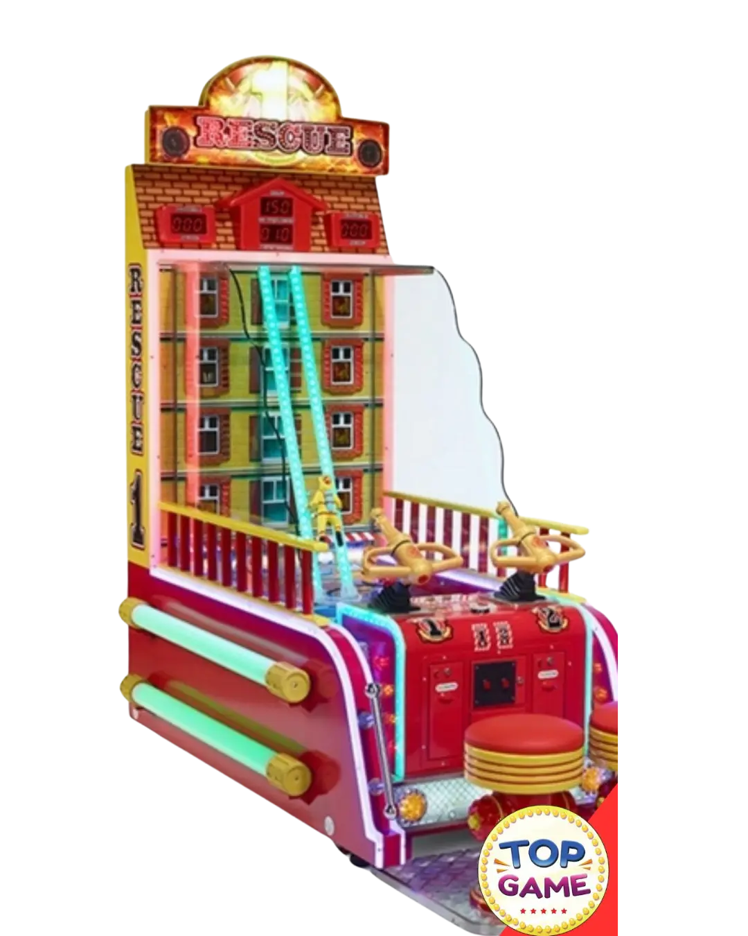 Rescue One é uma máquina temática de bombeiros que coloca os jogadores na pele de verdadeiros heróis! Com visual estilizado como um caminhão de resgate e uma mecânica envolvente, esse jogo é garantia de diversão para todas as idades — especialmente para o público infantil e familiar.