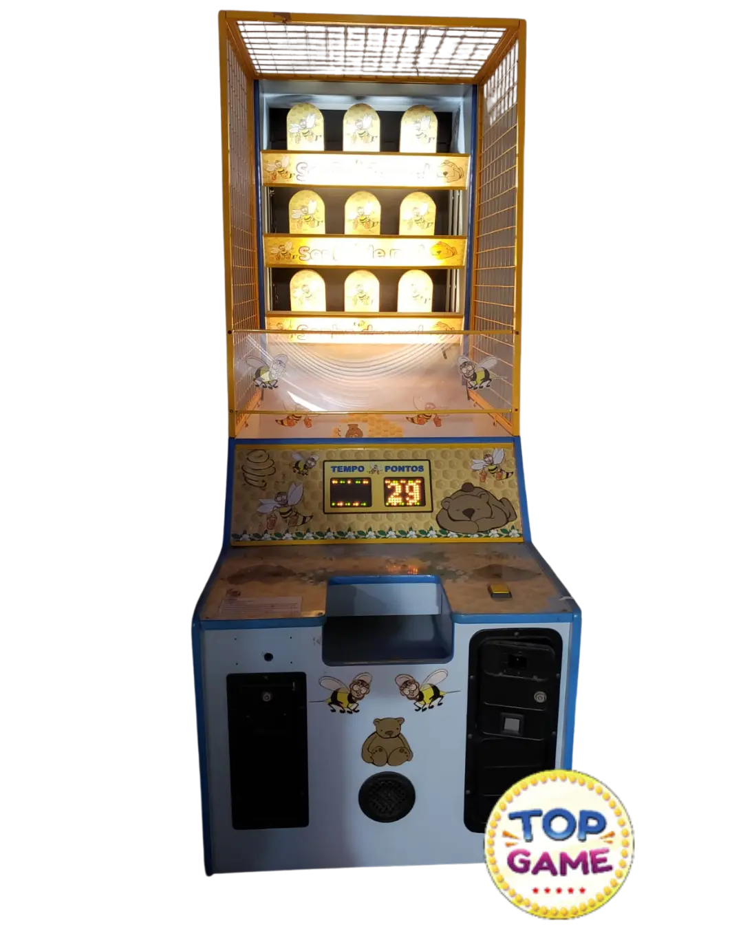 O arcade Sonho de Mel é uma máquina interativa voltada especialmente para o público infantil, com temática fofa e divertida de abelhas e ursos. O objetivo do jogo é acertar as colmeias iluminadas com bolinhas, marcando pontos conforme a precisão do jogador.
