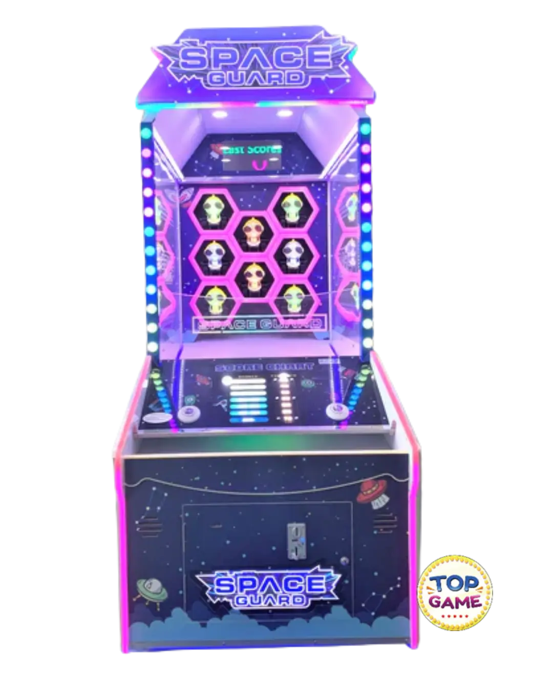 Inspirado em jogos de “whack-a-mole”, ele traz uma versão futurista e iluminada, perfeita para buffets, shoppings e centros de entretenimento que querem impressionar com um visual moderno e jogabilidade envolvente.