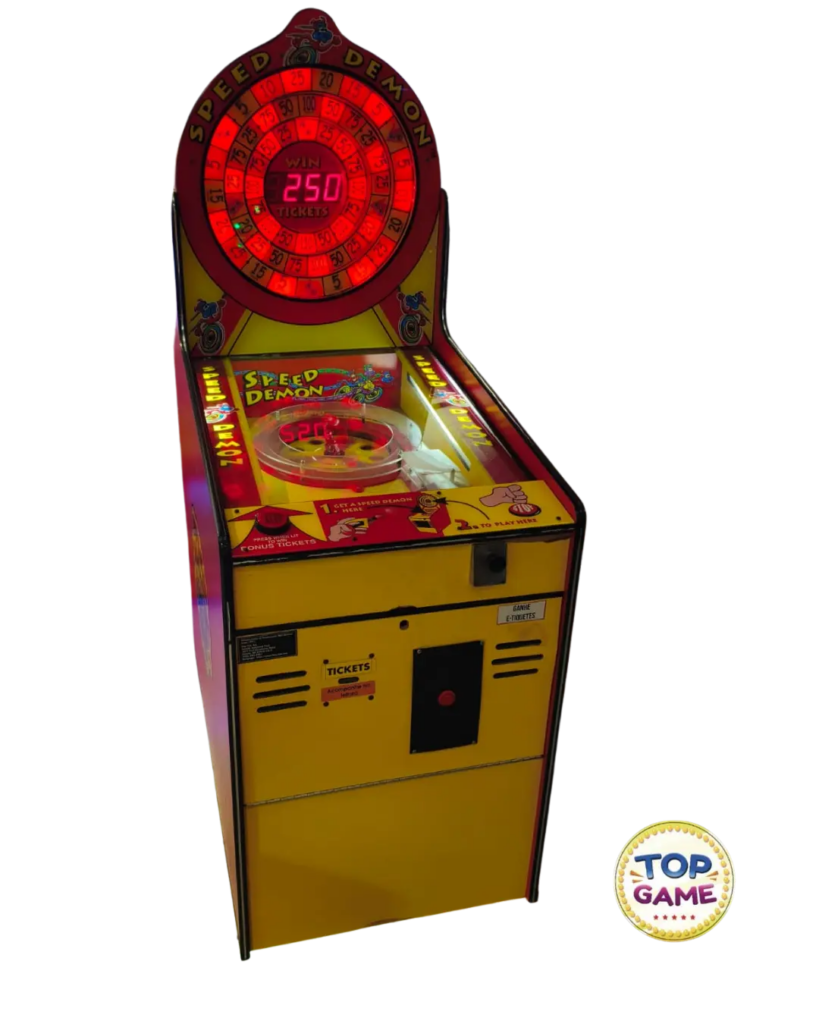 O Speed Demon é a perfeita combinação entre design icônico e mecânica envolvente. Com sua imponente roda iluminada e dinâmica de jogo baseada em precisão, este arcade transforma cada partida em um momento de expectativa, desafio e recompensa.